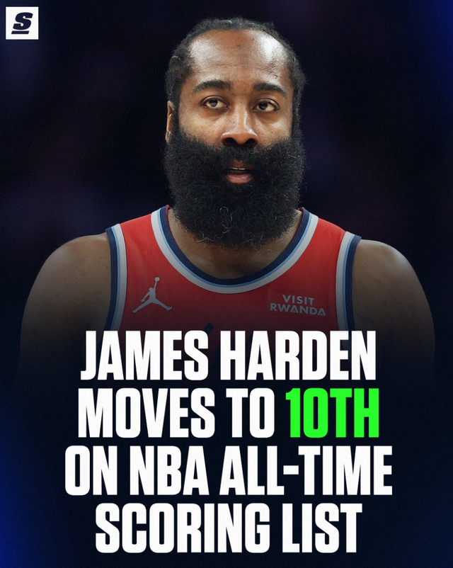 第三节哈登通过两个罚球超越安东尼正式进入NBA历史得分榜前十。NBA官方发推为哈登庆祝,第三节哈登5中1+三分2中0+罚球5中5,拿到7分2篮板2助攻1盖帽,三节打完已经拿到26分4助攻真的不算差。
